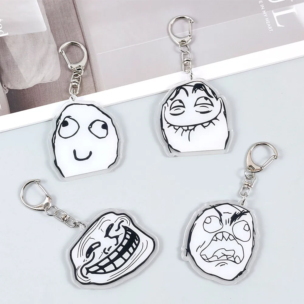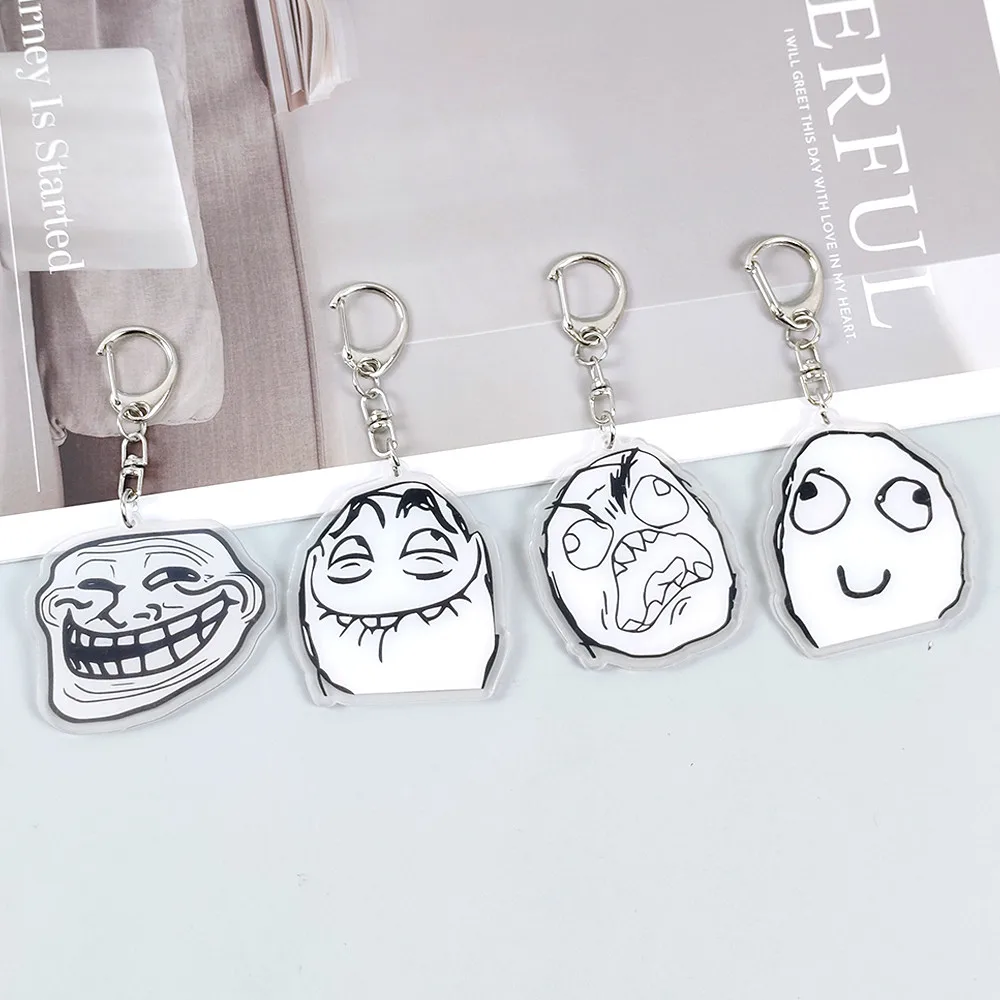 Creative Troll Face Keychains No Me Gusta Rage Forever Alone Acrylic Pendant Key Chain Backpack Car Ornament Comic Fans Gift