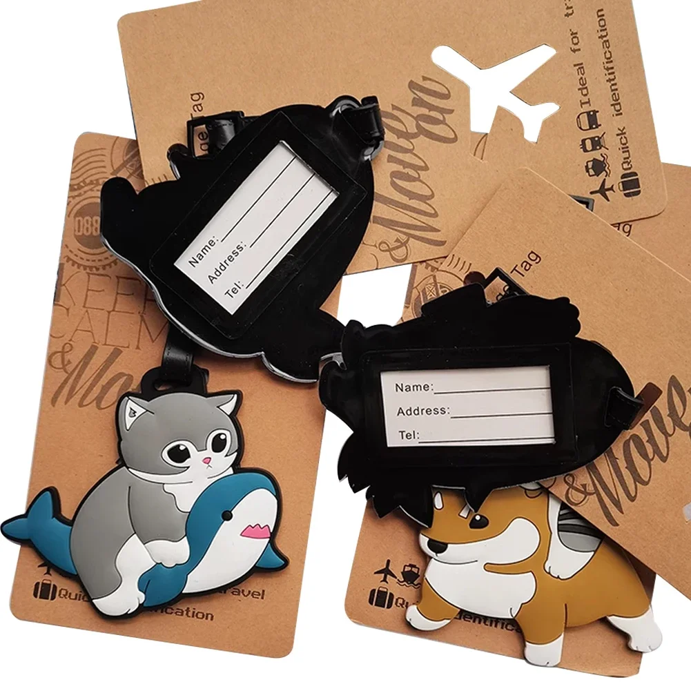 Kawaii Shark Cat Design Luggage Tag Women Travel Accessories Cartoon PVC Luggage Label Men Portable Anti-loss Address Name Tag