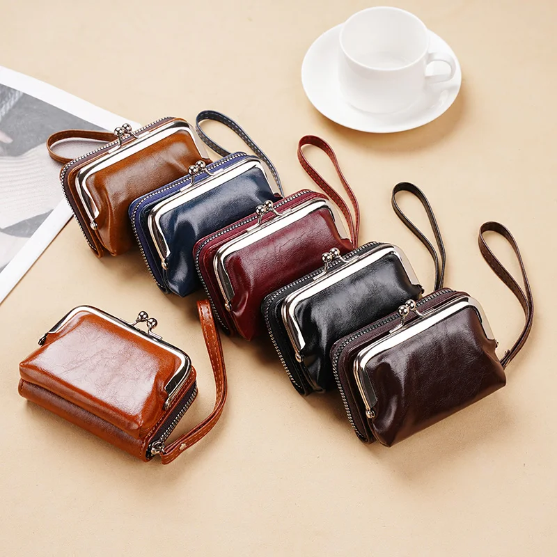 Lonny New Change Card Holder Cross-Border Supply Women Buckle Coin Purse 4-Inch Zip-up Clip Clutch