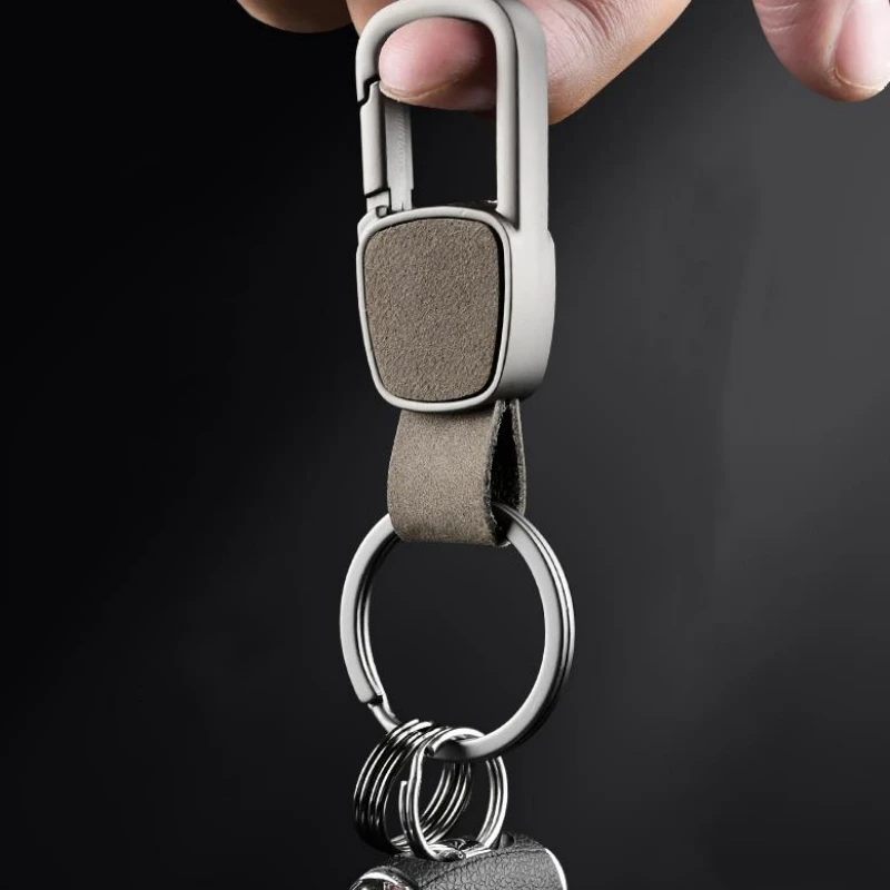 Men Frosted Genuine Leather Car Key Chain Key Ring Waist Hanged Key Holder Fashion Business Women Keychains With Two Rings