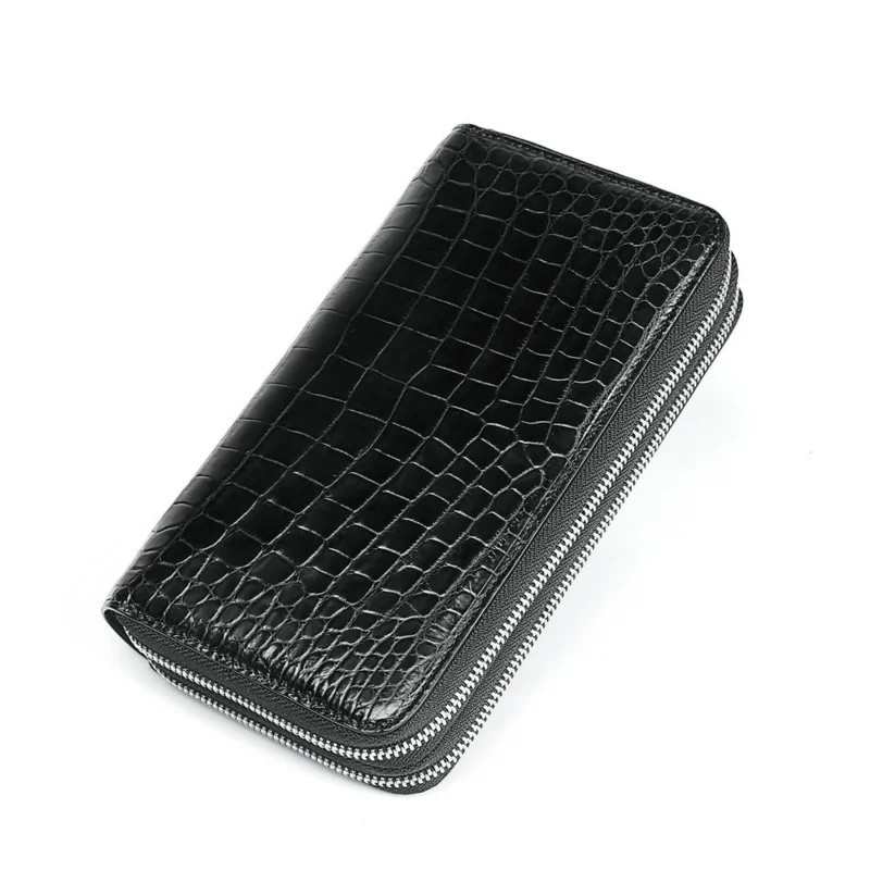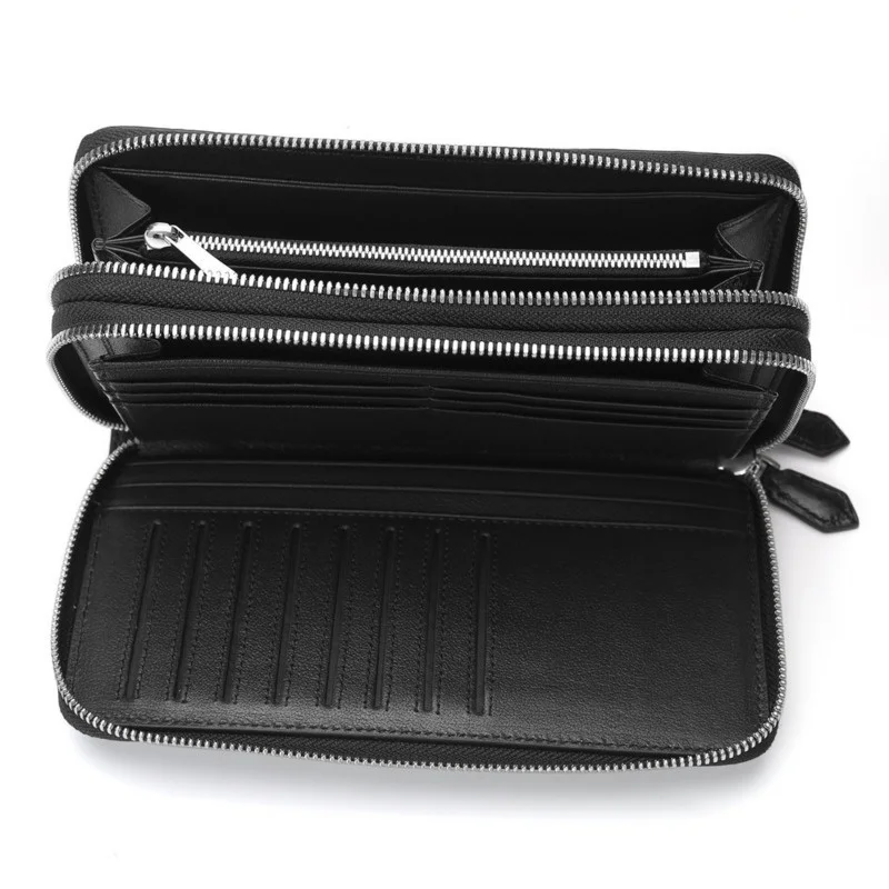 Men’s Genuine Leather High Quality Luxury Business Wallet Trend Double Zipper Clip Bags Leisure Clutch Bag Fashion Black Purse