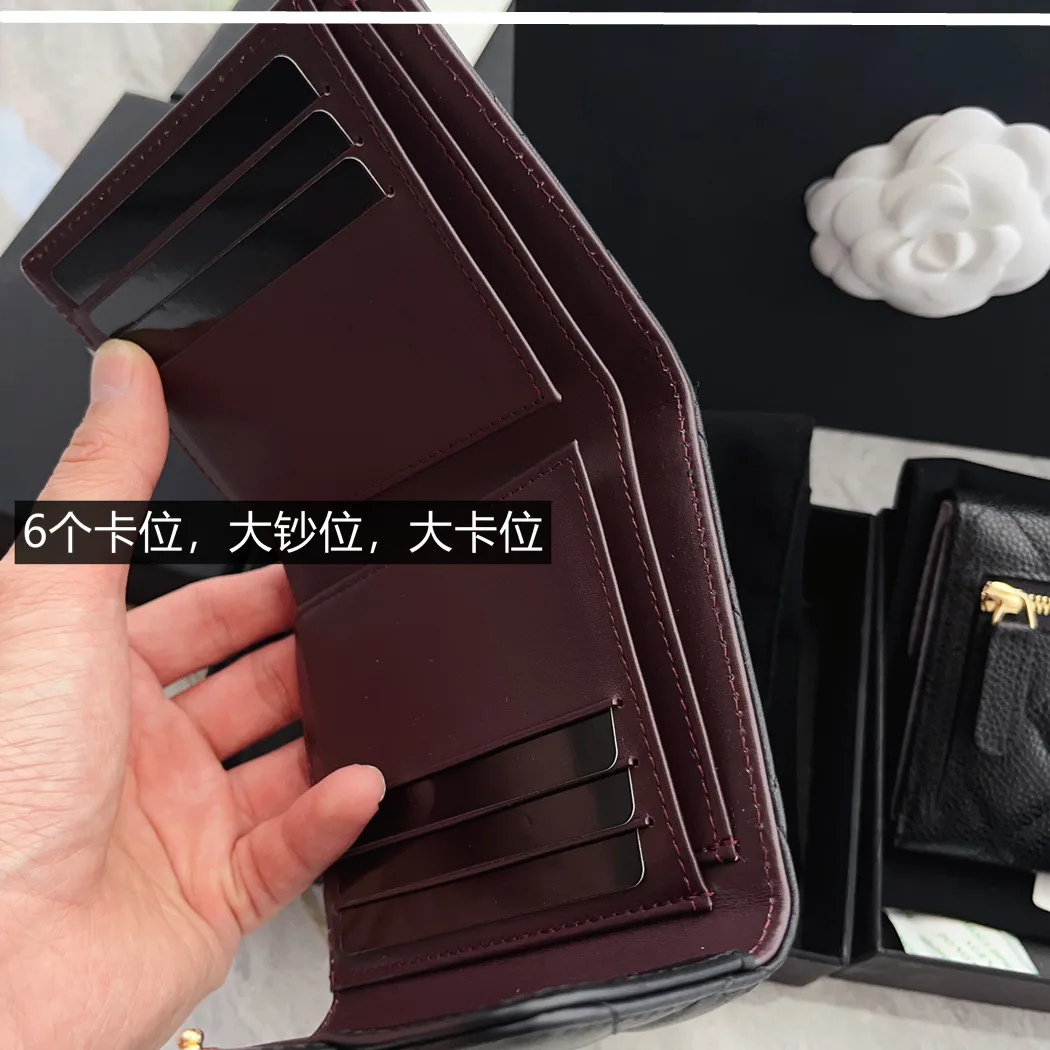 MIA Classic Mouth Cover Wallet Tri-fold Wallet Women’s, Flip Rhombus Change Bag Wallet, Calfskin Large Card Bag