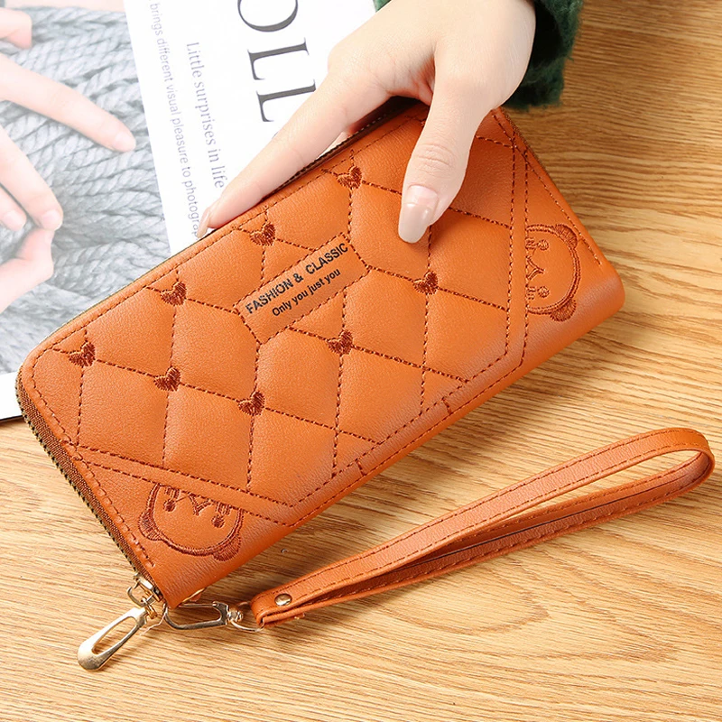Women’s Embroidered Wallet – European Style Zipper Card Holder with Phone Pocket, Fashion Crossbody Handbag Purse