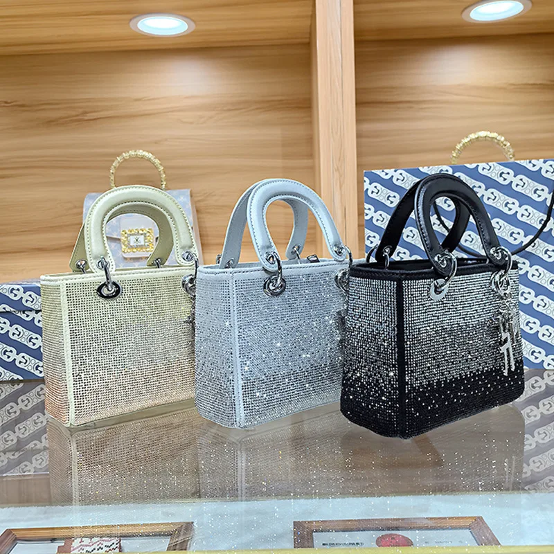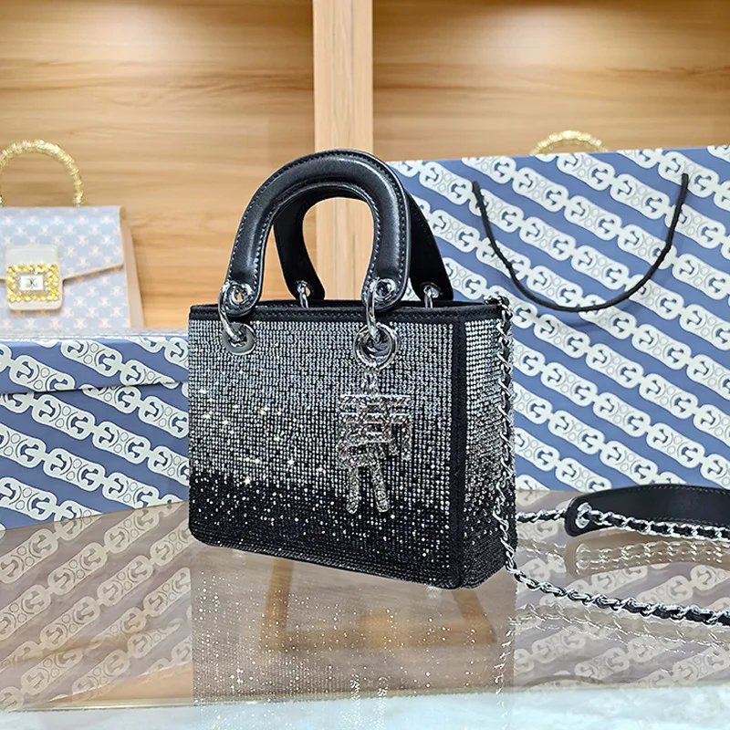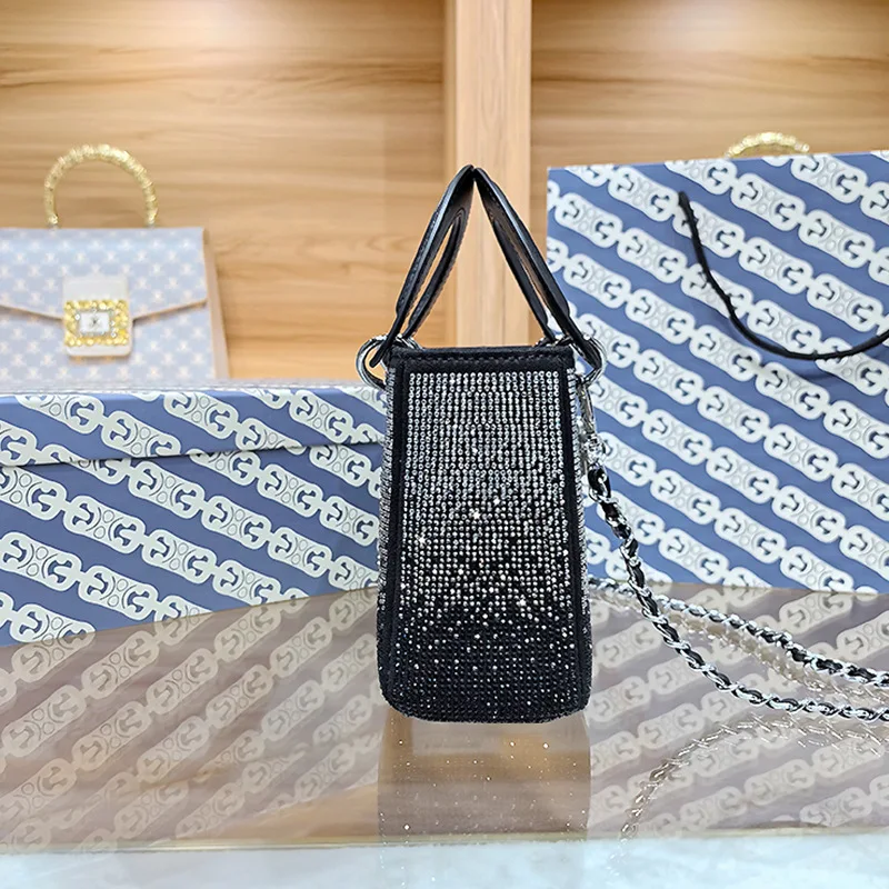 Women’s Handbag New High-end Gradient Rhinestone Chain Portable Small Square Bag Evening Banquet Designer Crossbody Bag Purse