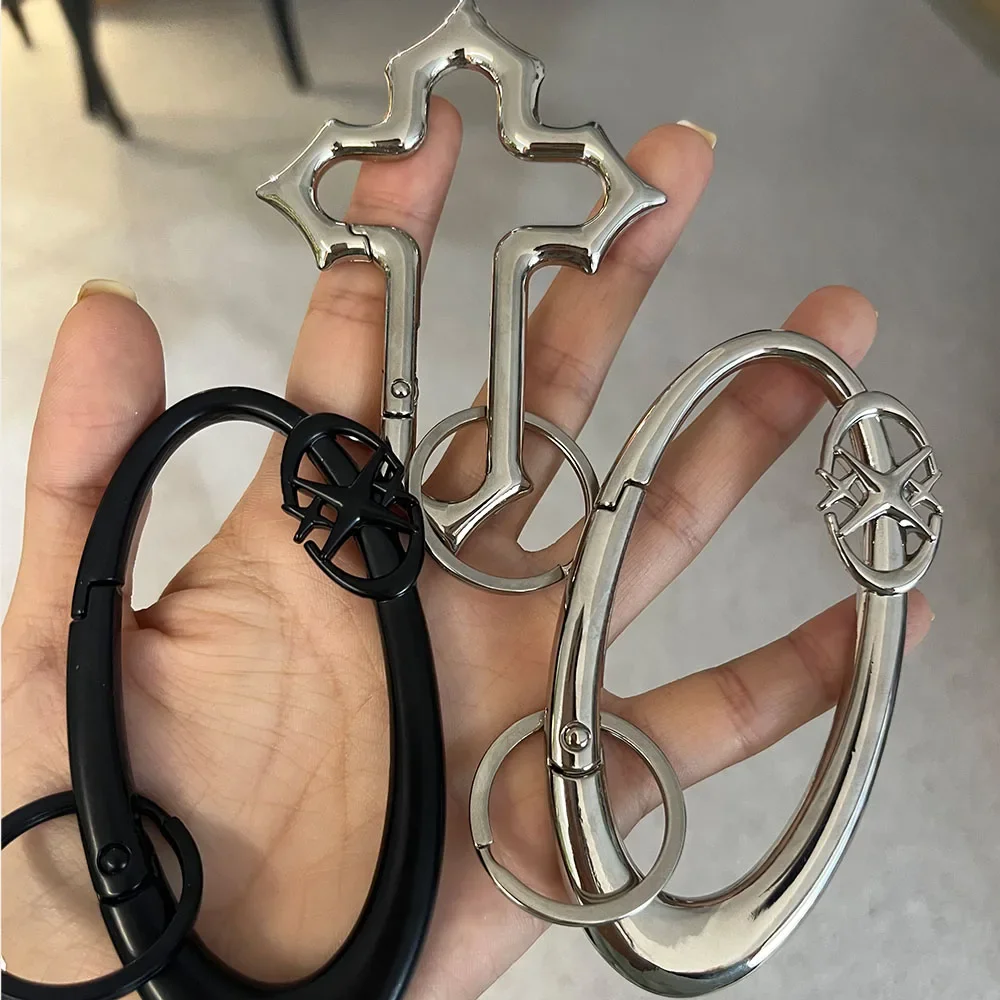 Y2K Cross Carabiner Keychain Religious Crucifix Grunge Clasp Key Clip EDC Gift Dad Boyfriend Men Camping Hiking Outdoor Climber